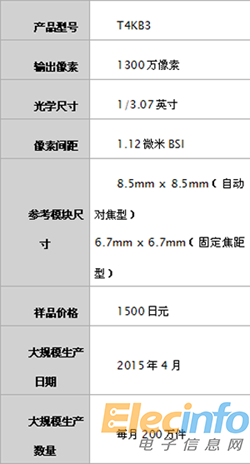 東京—東芝公司(TOKYO:6502)今日宣布推出“T4KB3”,一款面向智能手機(jī)和平板電腦的1300萬像素BSI[1] CMOS圖像傳感器,其光學(xué)格式為1/3.07英寸。樣品發(fā)貨即日啟動。