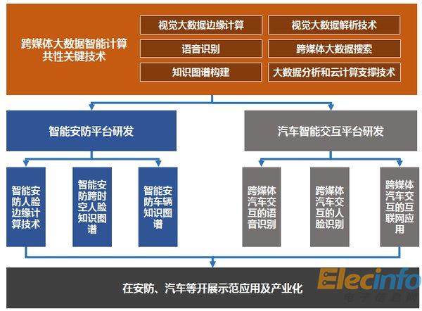 項目將首先以跨媒體智能為核心,研發視覺、語音、自然語言大數據機器學習算法和云計算大數據支撐技術,構建面向跨媒體大數據核心軟件模塊,為安防、汽車的人工智能產業化提供技術支撐。